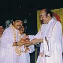Ranjeet is being felicitated by Bhajan Samrat Anup Jalota